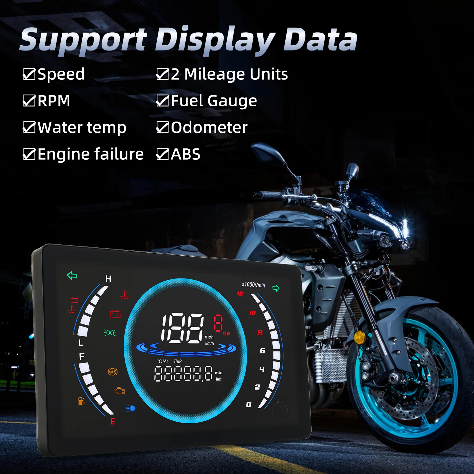 - Equipped with sensors: Motorcycle Speedometer